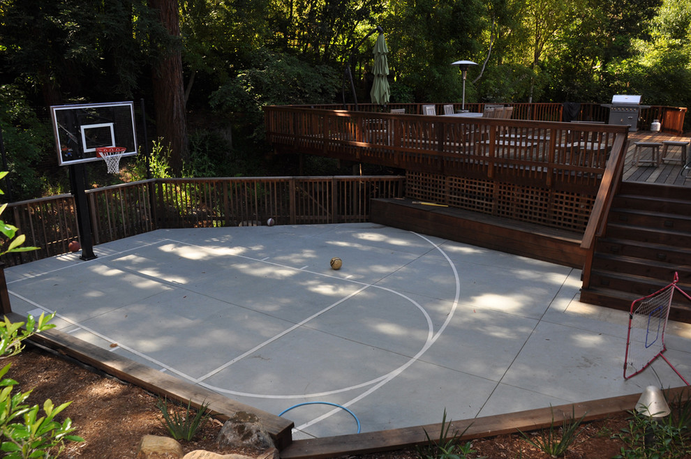 Basketball Court Patio Backyard Fire Pit Hardscaping Cement